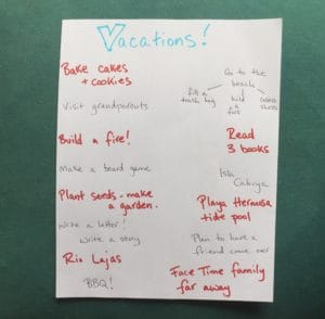Some ideas might take some planning to come to fruition. Involve your children in that planning. “Can you write a list so we don’t forget what to take for lunch on the beach?”