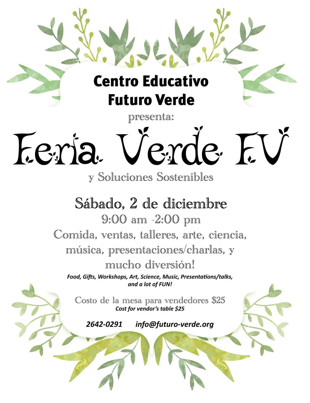The big day is almost here…the first annual Sustainable Solutions Fair hosted by Futuro Verde students on Saturday, December 2nd from 9am to 2pm! All of our students, grades pre-K through 11th, have been working very hard on developing innovative projects and they are ready to educate their families, friends, and community members on sustainable solutions to local issues.